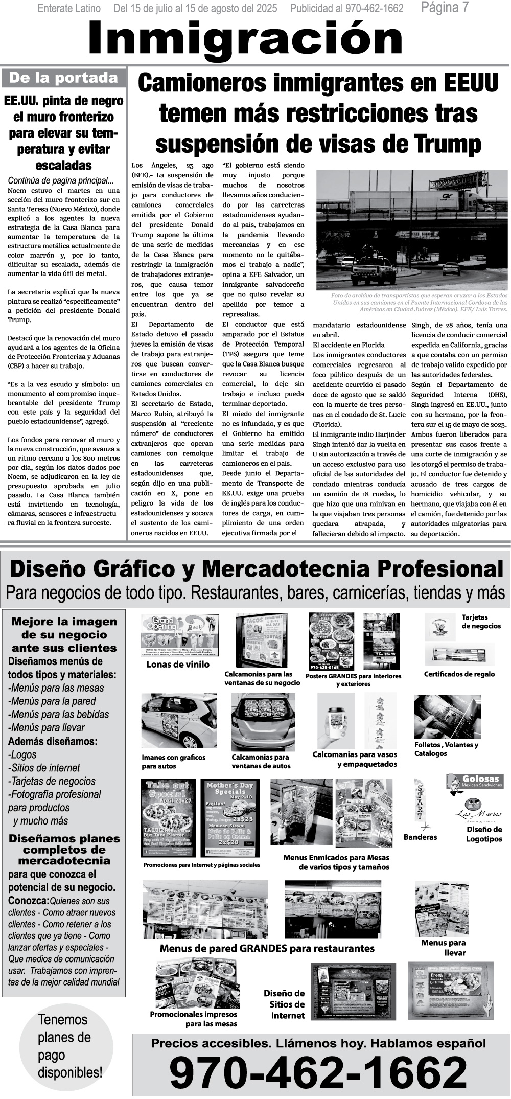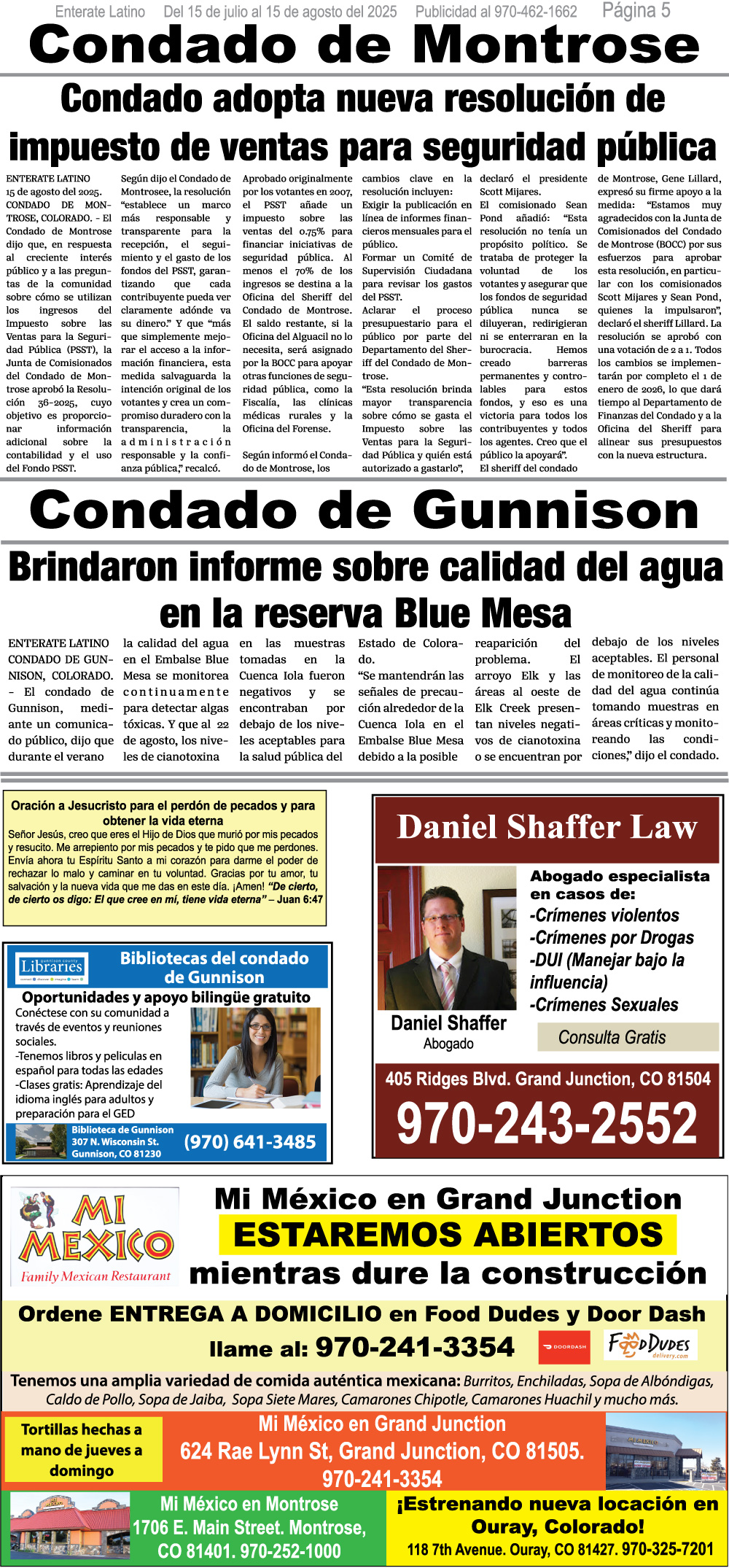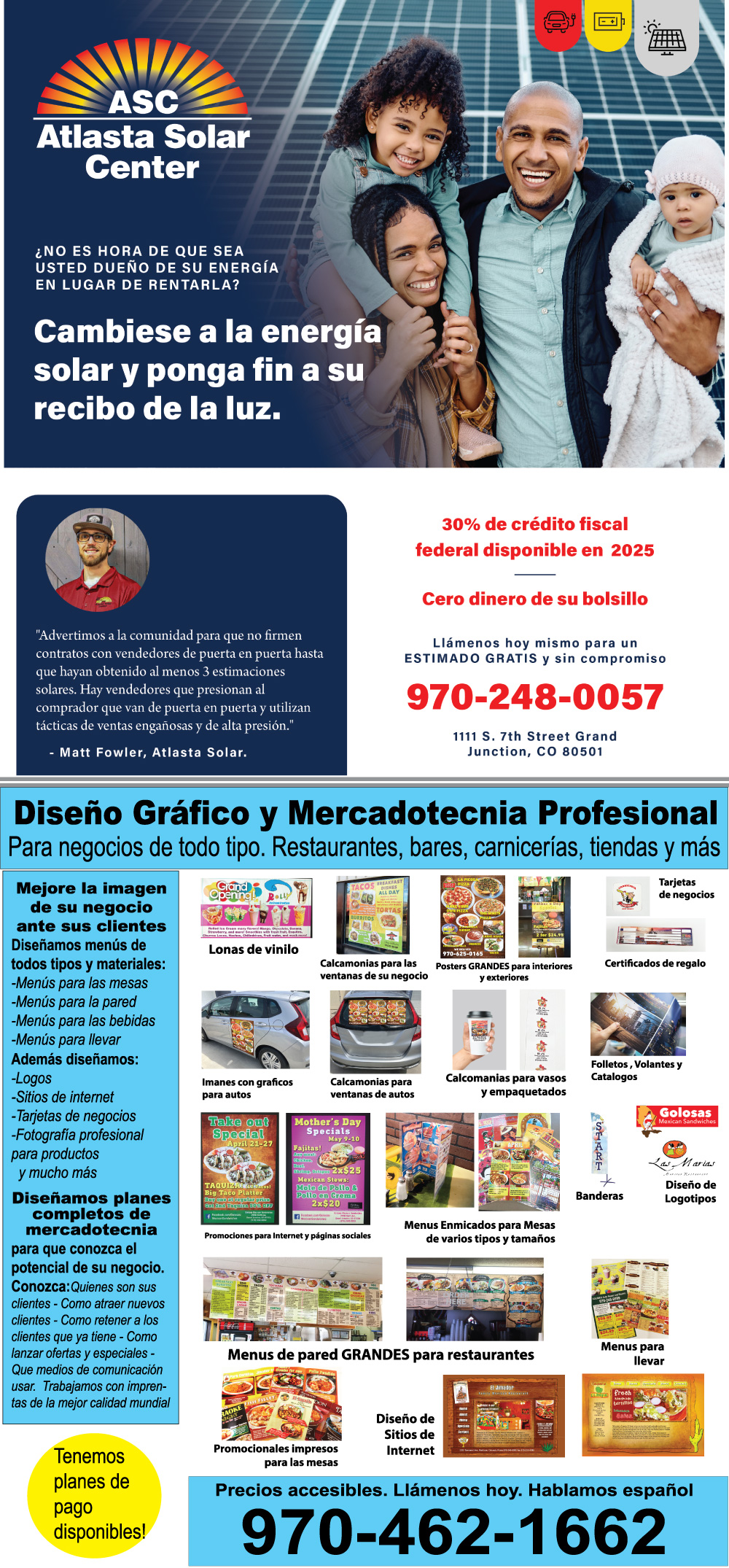 ADVERTISE on Enterate Latino and make your business visible to thousands of Spanish speakers each month across 5 counties in Western Colorado and online! Our ads start at $85 per month.