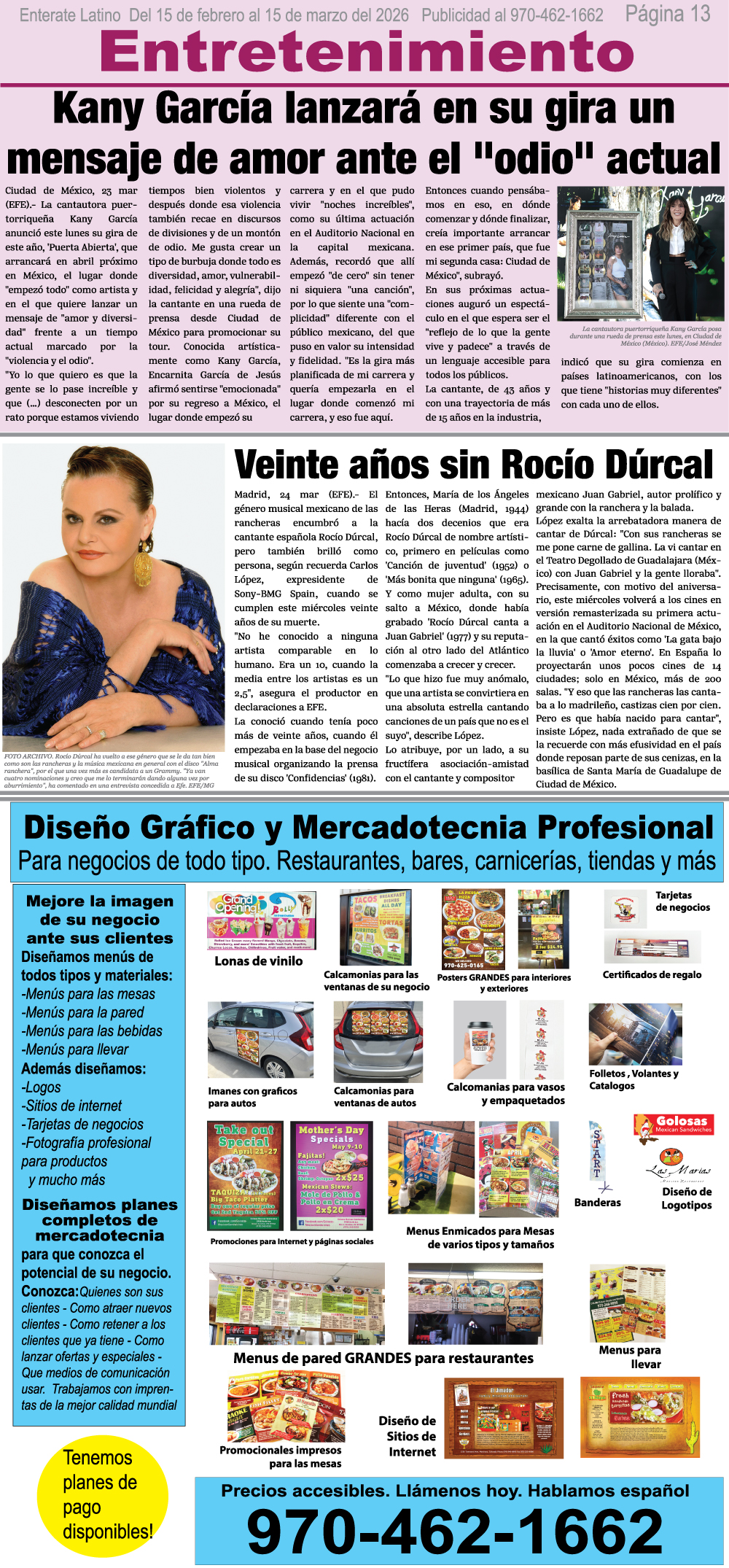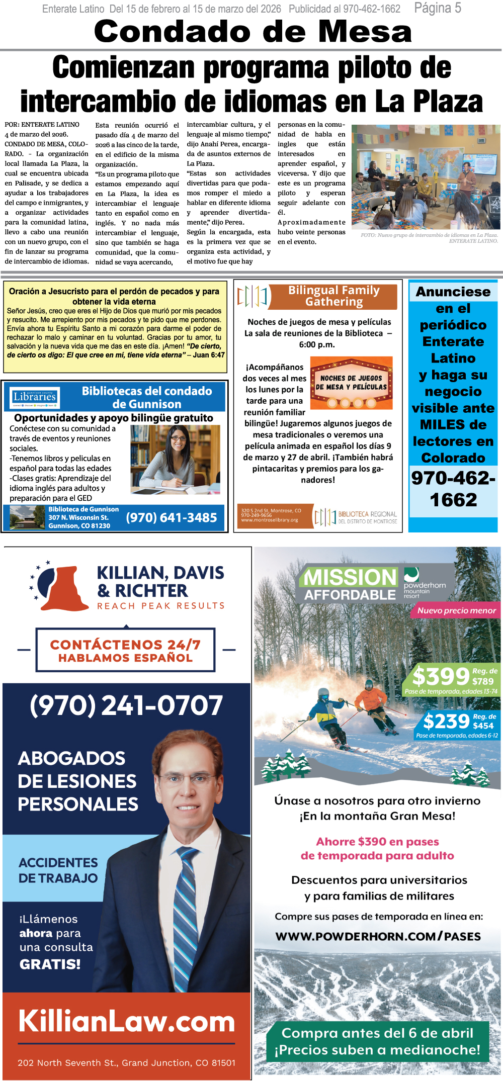 ADVERTISE on Enterate Latino and make your business visible to thousands of Spanish speakers each month across 5 counties in Western Colorado and online!