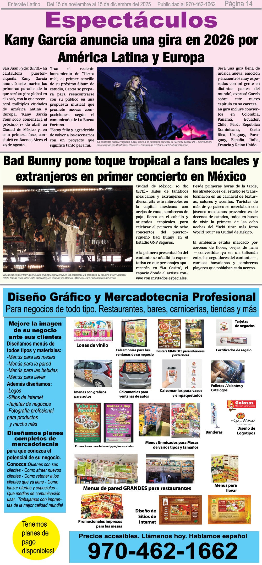 ADVERTISE on Enterate Latino and make your business visible to thousands of Spanish speakers each month across 5 counties in Western Colorado and online!